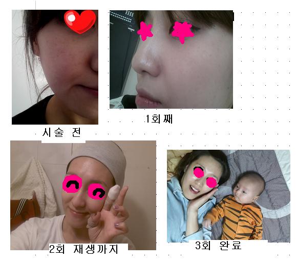 3월 18일 첫 시술을 하여 5월 6일에 3회가 모두 끝났습니다.(재생관리 3회포함)