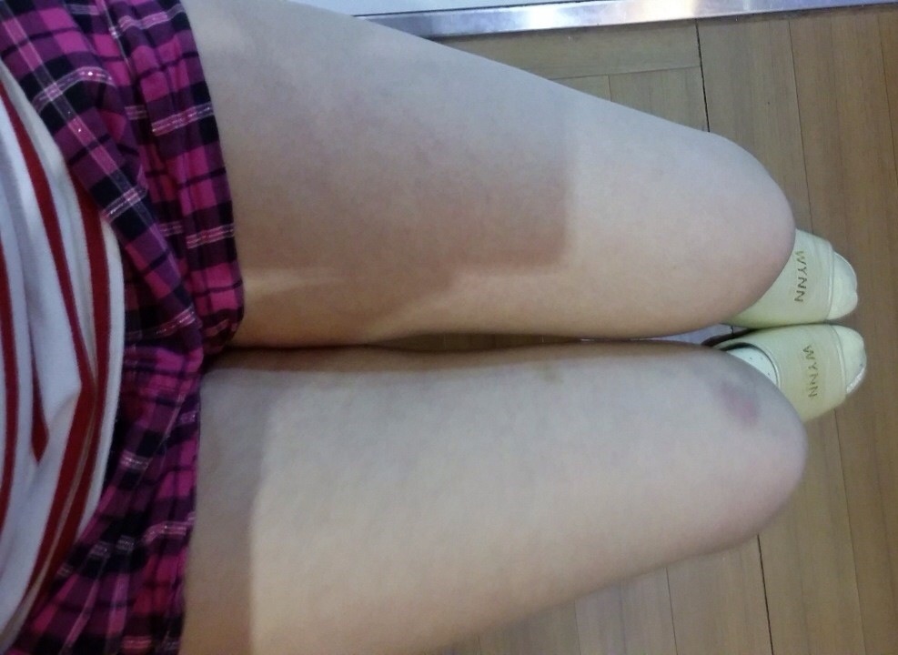 빨간 체크바지 입은 두사진은 처음 시술받을때 제 다리 사진인데요