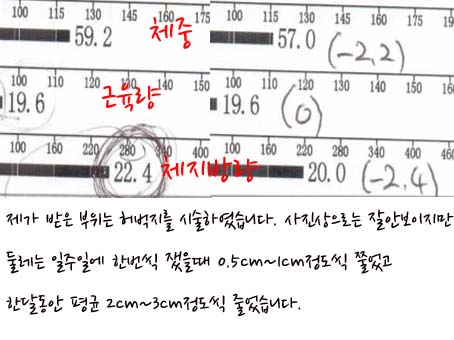 윈클리닉 인천점에서 시술을 받고 전 후 사진과 체지방을 측정을 비교해서