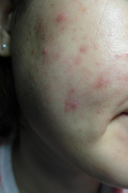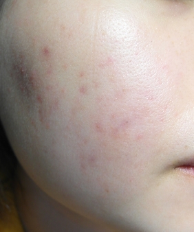 붉은기가 있고 여드름을 손으로 건들여서 피부에 흉터 때문에