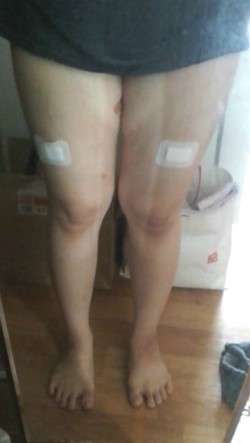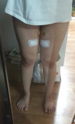 왼쪽- 6회받고나서 다음날. 허벅지안쪽에 HPL용액이 있어서 하얗고 부어있어요.