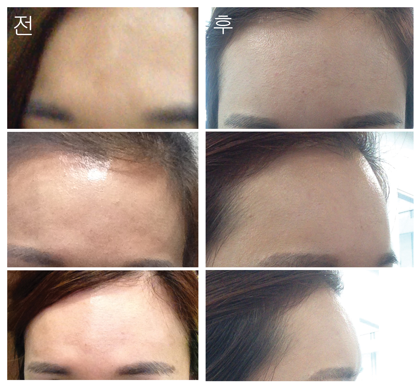 왼쪽사진 세로로 3장이 시술 전, 오른쪽 세로로 3장이 시술 다음날 아침이에요~~ (보정없는사진!)
