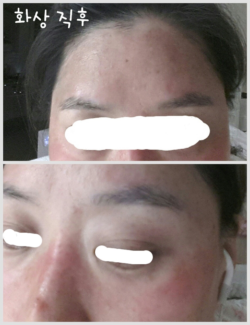 피부톤이 밝아진 건 물론이고 이마라인에 뚜렷했던 경계의 화상자국이 거의 사라졌습니다.