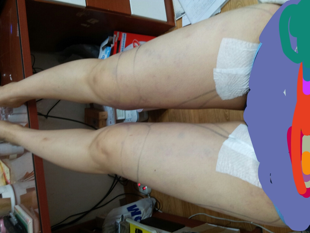 수술한지 6일째에요~! 저는 멍이 그리 심하게 들지않았어요 서있어서 무릎에만 멍들었어요.