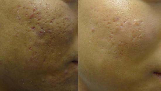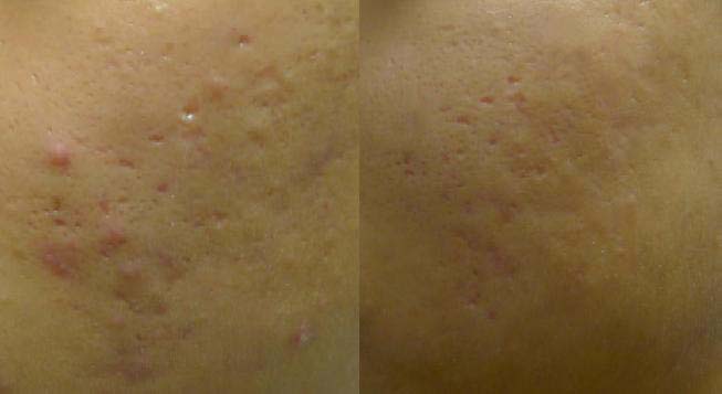 여드름이 많이 호전되어 이젠 여드름흉터를 없애고자 프락셀을 진행하였습니다.