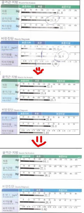 가장 눈에 띄는것은 몸무게와 체지방률과 BMI 예요!! 이렇게 빠지기 쉽지 않다는데...