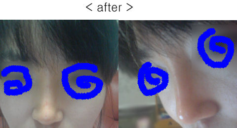 콧대 다 꺼진 상태로 맞으면 before & after 이 너무 차이가 나서;; 일부러 꺼지기 전에