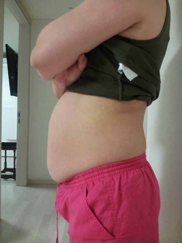 아이 둘을 제왕절개로 낳아서인지 수술자국 위로 뱃살이 오뉴월 개 혓바닥 늘어지듯이 쭈~욱 늘어지네요. ㅠㅠ