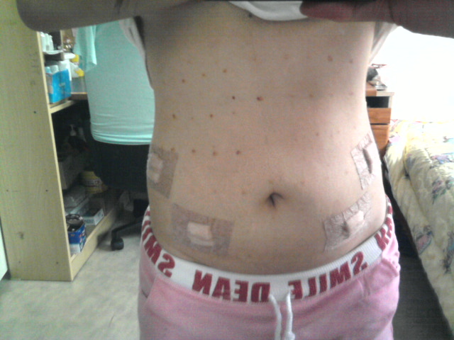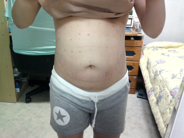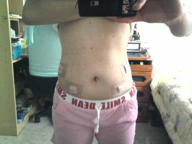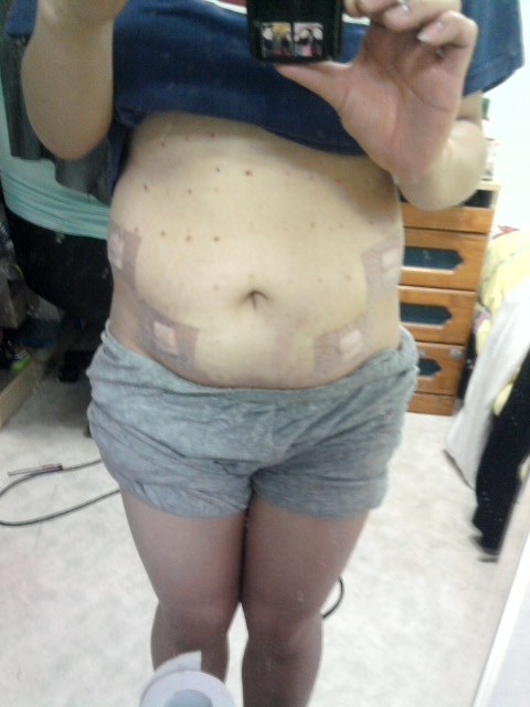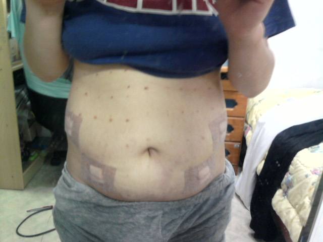 약물을 투입하는 시술이기 때문에 사진처럼 배가 부풀어올라요. 2~3일 정도면 약물은 거의 빠지고