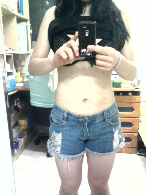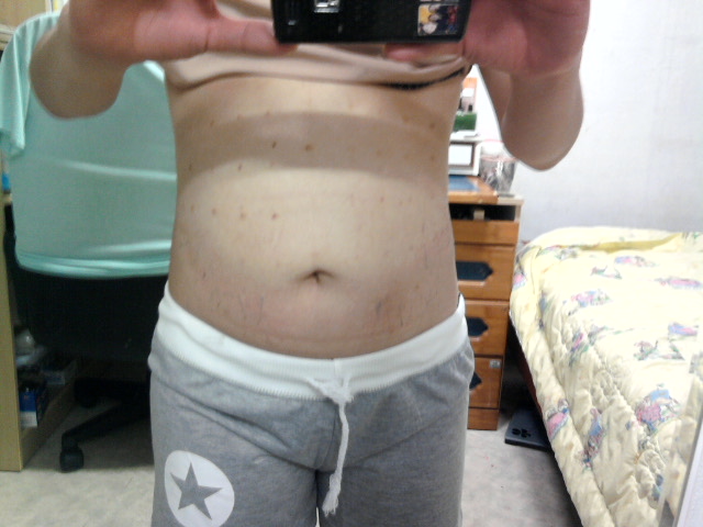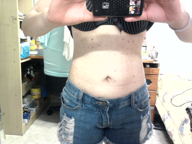 보시다시피 배가 많이 나오고 러브핸들(옆구리)이 거의 없는 편이였어요. 늘 뱃살때문에 박스티를 즐겨입고했죠.