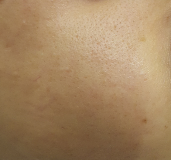 전체적으로 모공이 흐릿해지고 톤이 밝아진 느낌입니다
